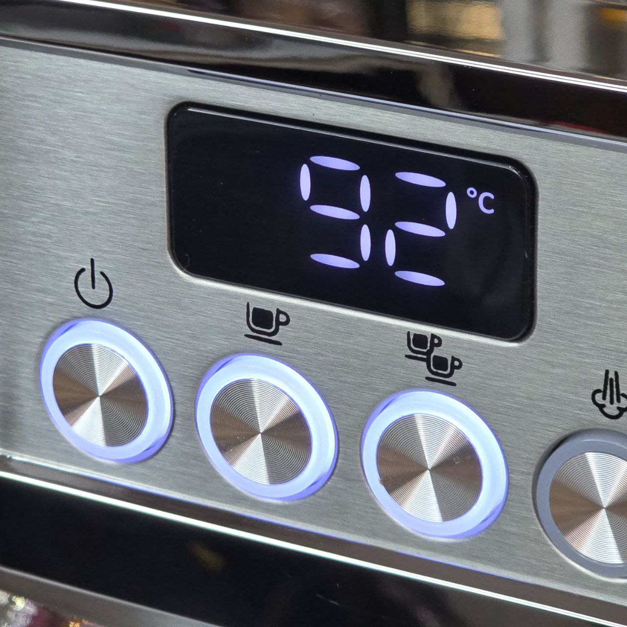 دکمه ها همگی به دو حالت چشمک زن و چراغ ثابت در می آیند که چراغ ثابت نمایان گر آماده بودن و چراغ چشمک زن نماینگر در حال آماده سازی دستگاه است این دستگاه در کنار دکمه های نام برده شامل یک نمایشگر دیجیتالی میباشد که میزان دمای آب در مخزن دستگاه اسپرسو را نشان می دهد.