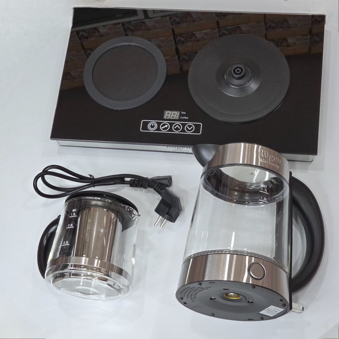 این چای ساز از یک کتری و یک قوری و یک بشقاب زیرین با ظرفیت کتری 1.7 لیتر و ظرفیت قوری 1 لیتر تشکیل شده است.