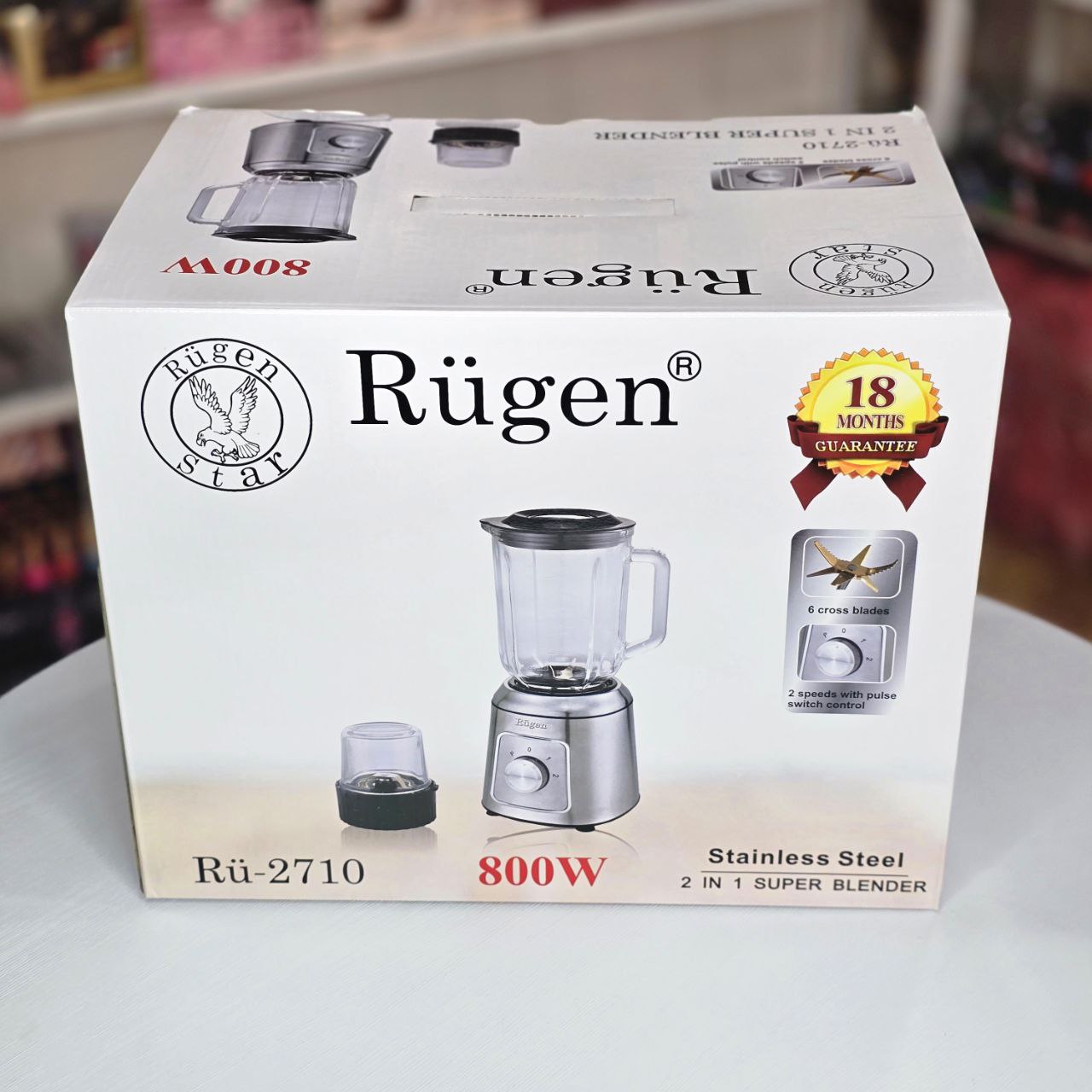 مخلوط کن و آسیاب روگن مدل RU-2710 به واسطه متور قدرتمند و تیغه های 6 پره قادر است سخت ترین کار ها را انجام دهد این دستگاه با توان 800 وات جزو بهترین مخلوط کن های بازار می باشد که از کیفیتی بی نظیر بهره می برد. موتور این مخلوط کن در برابر گرما مقاوم می باشد. به گونه ای که هنگام گرم شدن پیش از حد به صورت خودکار خاموش می شود. در ضمن توجه داشته باشید که این مخلوط کن دارای پنل عقربه ای و دارای دور تند و کند است و دو سرعت متفاوت دارد که شما می توانید آن را توسط کنترل ولومی تنظیم نمایید. در ضمن توجه نمایید که این مخلوط کن از عملکرد پالس نیز بهره می برد. از دیگر قابلیت های این مخلوط کن این است که می تواند یخ را نیز خرد نماید و به طور کل می توان با آن اسموتی بسازید و نگران خراب شدن دستگاه نباشید.